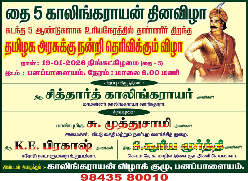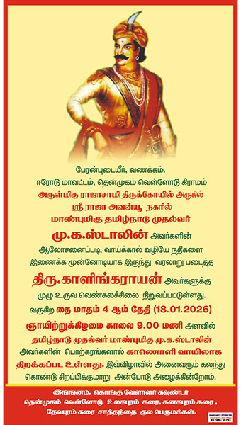 இன்று காலிங்கராயன் மணி மண்டபம் வருகை தந்து காலிங்கராயருக்கு மாறியதை செய்த த.ம.க தலைவர் G.K.வாசன் அவர்களை காலிங்கராயன் கொங்கு வேளாளர் அமைப்பு சார்பாக வருக!!! வருக!!! ஏன வரவேற்க்கிறோம்.