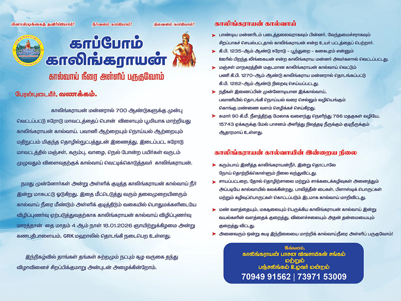 இன்று காலிங்கராயன் மணி மண்டபம் வருகை தந்து காலிங்கராயருக்கு மாறியதை செய்த த.ம.க தலைவர் G.K.வாசன் அவர்களை காலிங்கராயன் கொங்கு வேளாளர் அமைப்பு சார்பாக வருக!!! வருக!!! ஏன வரவேற்க்கிறோம்.